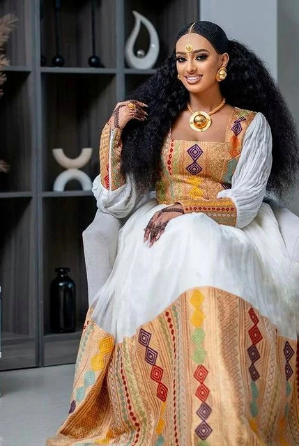Habesha Dress Habesha Kemis for New... Celebrate New Year's with the stunning Habesha dress, also known as Habesha kemis, a beautiful Ethiopian traditional dress featuring vibrant colors